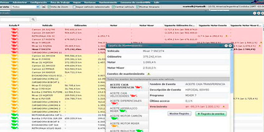 Programa alertas de cambio de aceite, correa, vencimiento de carnet de conductores, etc. y optimice el rendimiento de su flota. El sistema es muy flexible y le permitirá configurar todo tipo de alertas permitiéndole contar con la información precisa en el momento exacto para tomar decisiones que mejoren la performance y rentabilidad de su flota.
